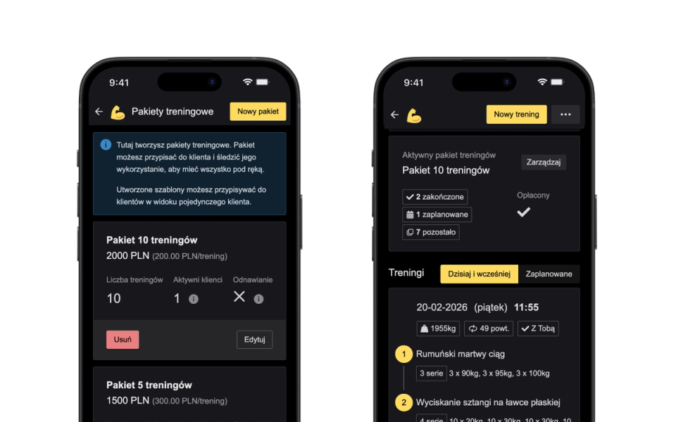 Aplikacja bicek.app ułatwia zarządzanie sprzedażą pakietów treningowych automatycznie odliczając wykorzystane treningi. Dodatkowo porządkuje finanse i sprawia, że proces odnowienia współpracy staje się naturalny i bezproblemowy.